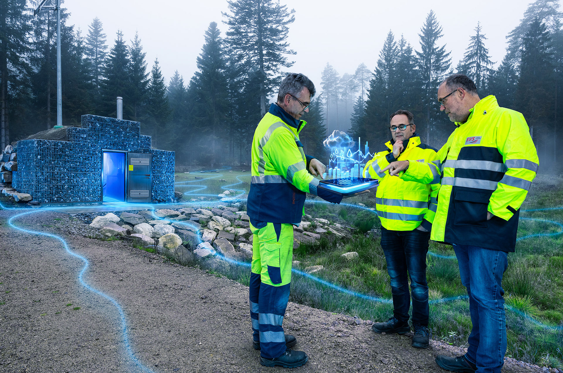 Projektentwicklung der Stadtwerke VS an einem futuristischen Hologramm